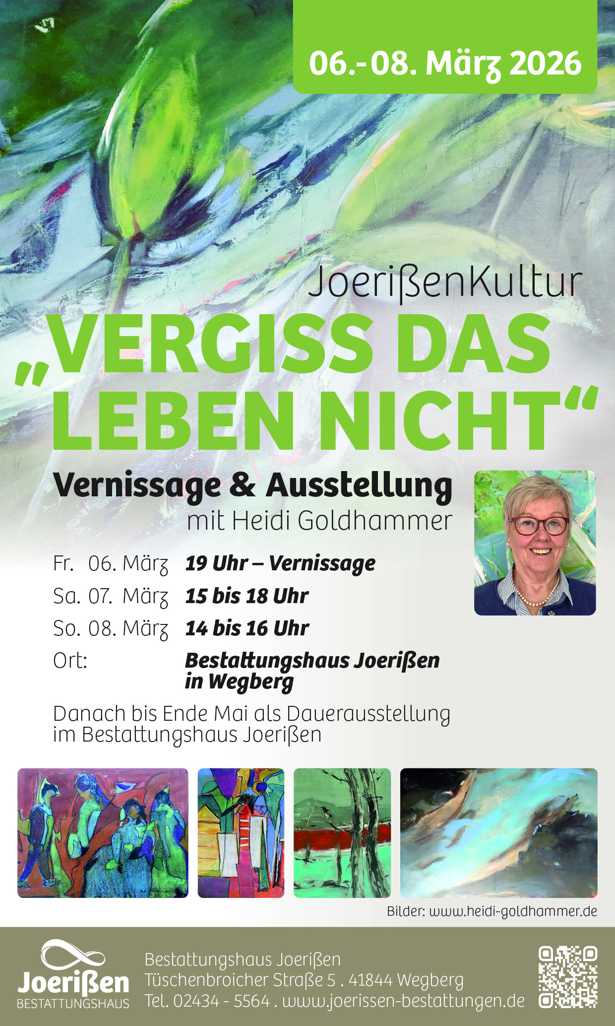 *** Einladung an alle Lebensgenießer zur Vernissage und Ausstellung “Vergiss das Leben nicht” am 6., 7. und 8. März bei uns im Bestattungshaus Joerißen ***
